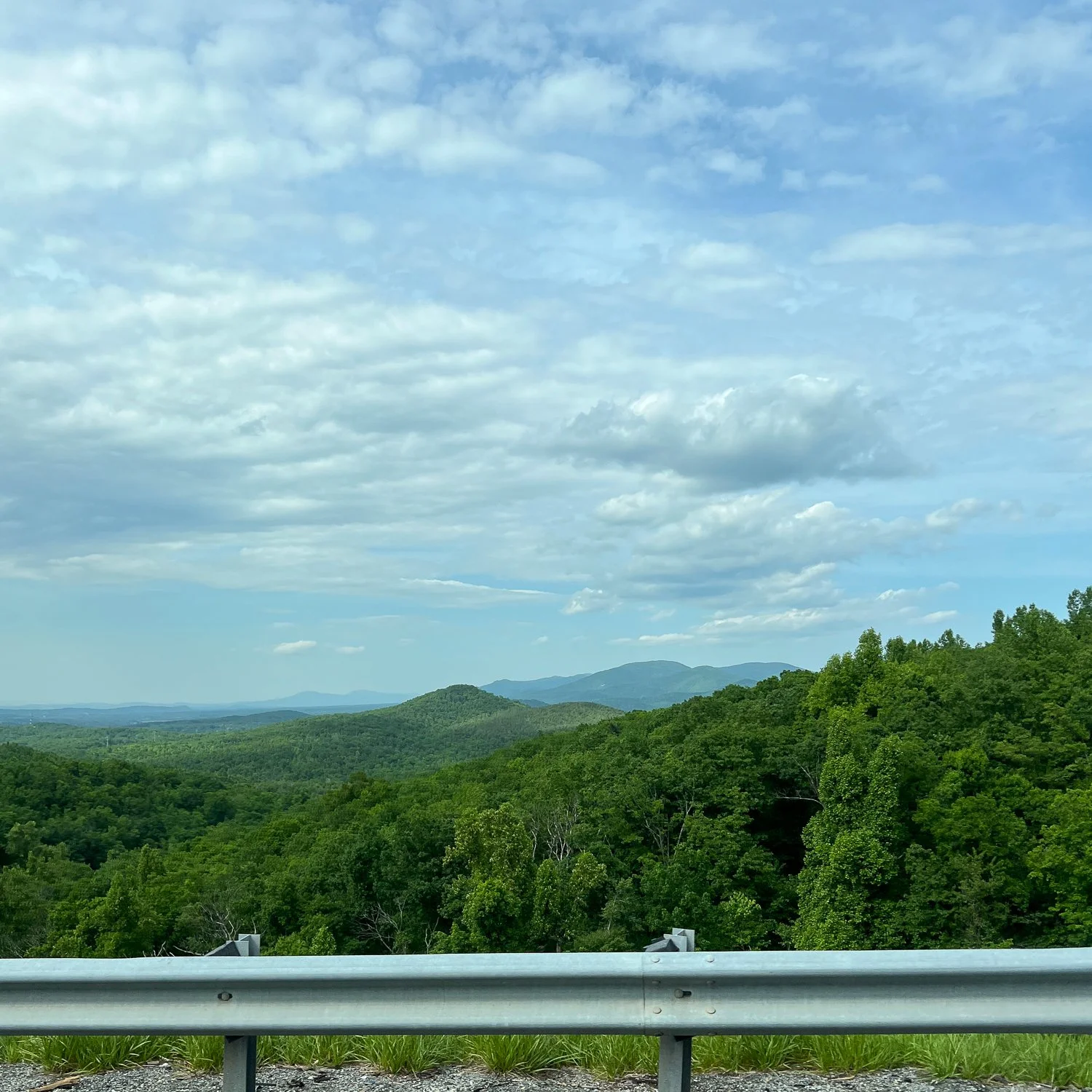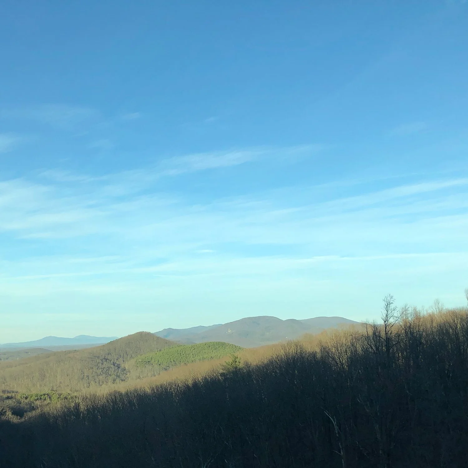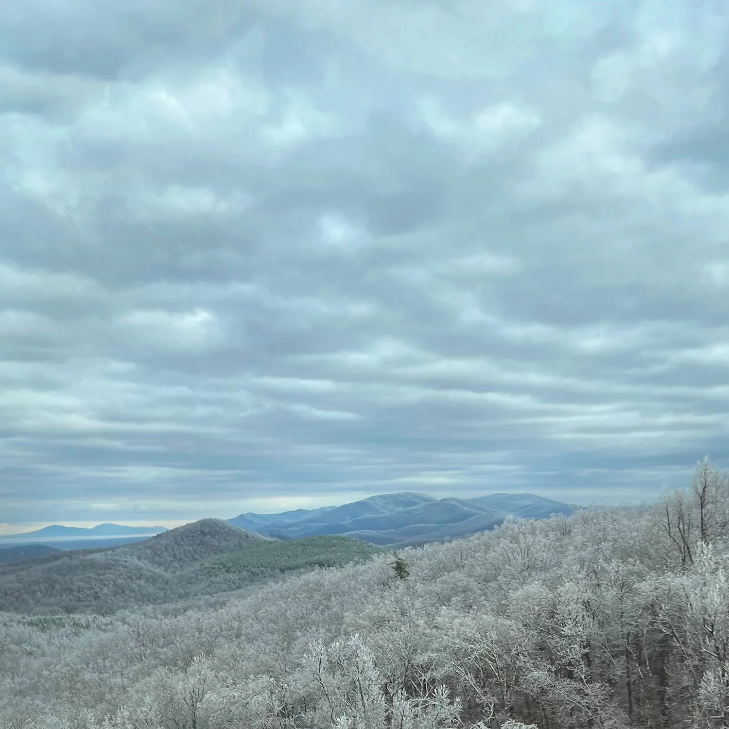 I made the photographs while driving west on I-64, just as I cross the mountain and begin to descend. The scene centers on a single peak in the first viewshed to the north. I work to align it so it rises slightly above the distant ridge and the two peaks behind it. The foreground is often blurred, sometimes catching the guardrail as it passes. What stays consistent is that peak—what changes is everything else: the light, the season, the time of day, my state of mind. I photographed this view between 2017 and 2024, using various iPhones along the way.